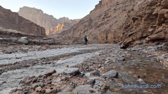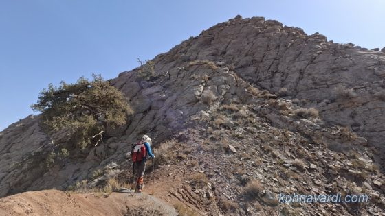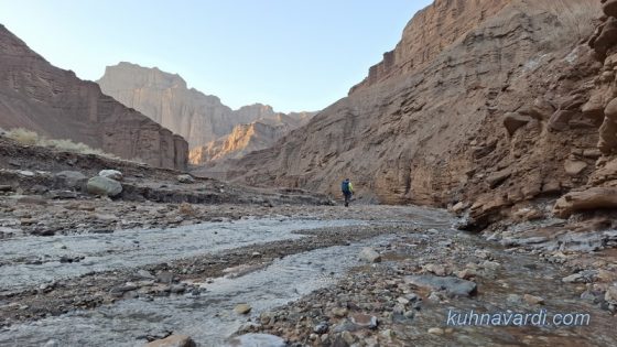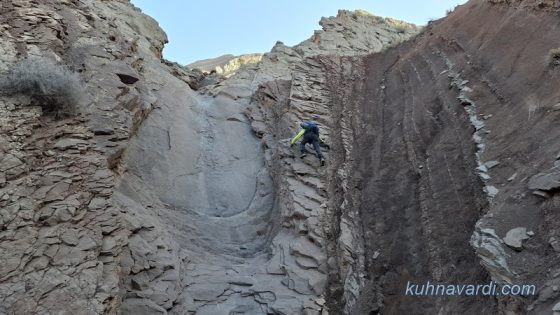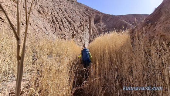 محو تماشای زیباییهای مسیر و صخرههای بلند دو سمت دره بودیم تا اینکه ساعت 09:45 پس از طی حدود 8 کیلومتر به نقطهای رسیدیم که باید از دره اصلی خارج شده و وارد دره فرعی سمت راست میشدیم (پوینت 1390 متر).