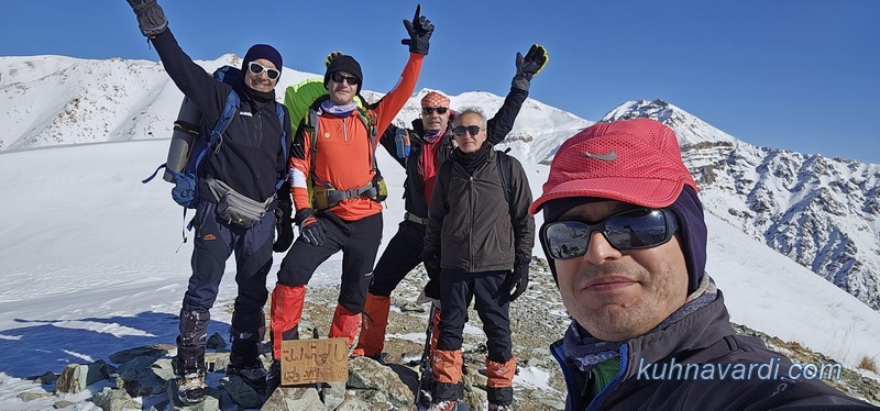 گروه کوهنوردی نشاط زندگی – قله پرسون 1393.10.12 – از راست: طیبه رنجبریان، نیما اسماعیلی، بهارالدین افضلی، معصومه لشگریان و نفر وسط ایستاده رضا حبیبی